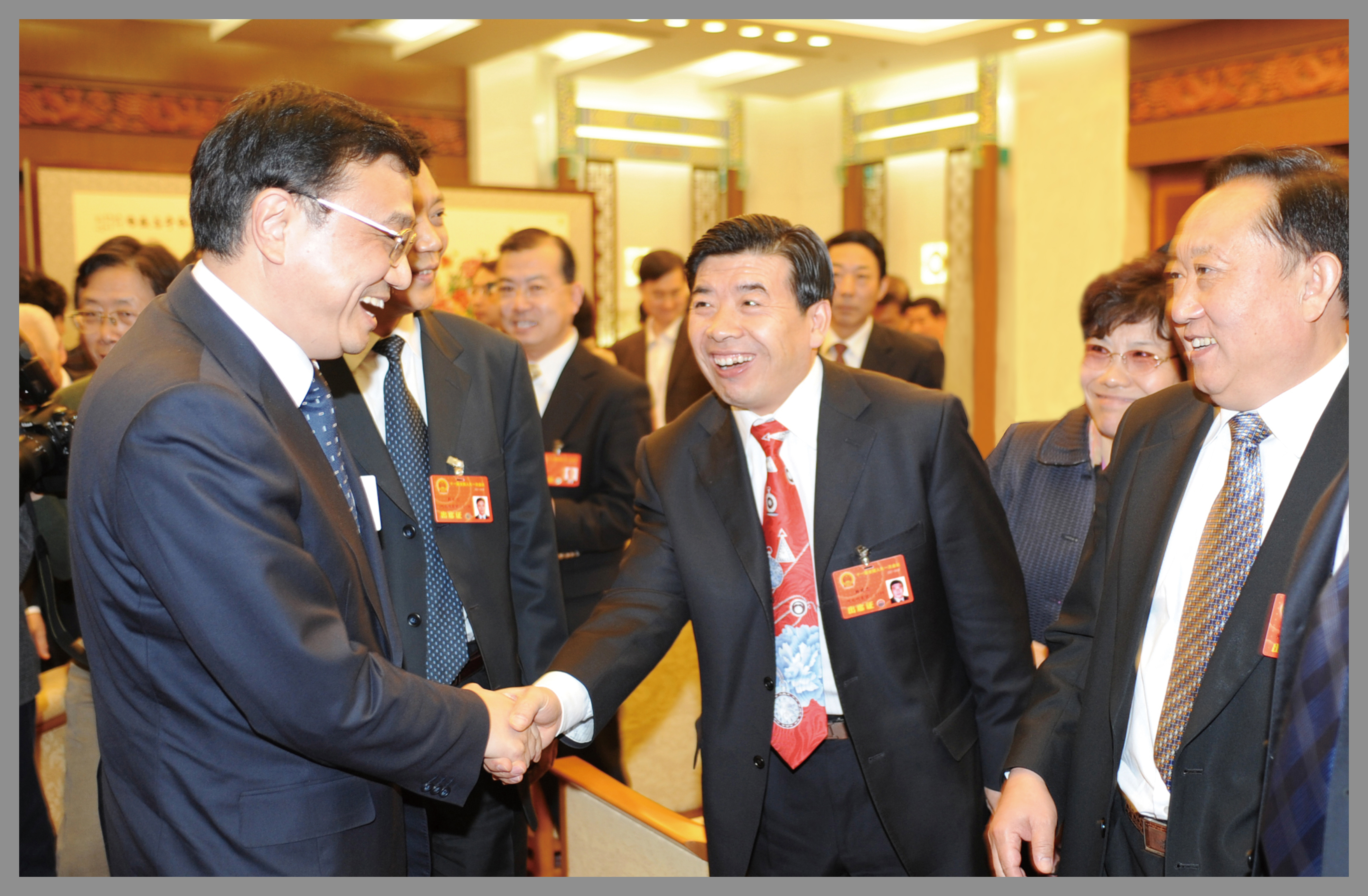 時(shí)任中央政治局常委、中央紀(jì)委書記王岐山與楊建忠董事長親切握手